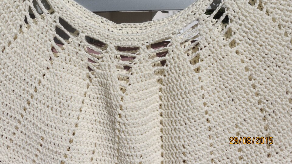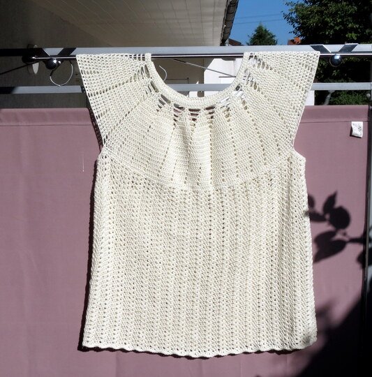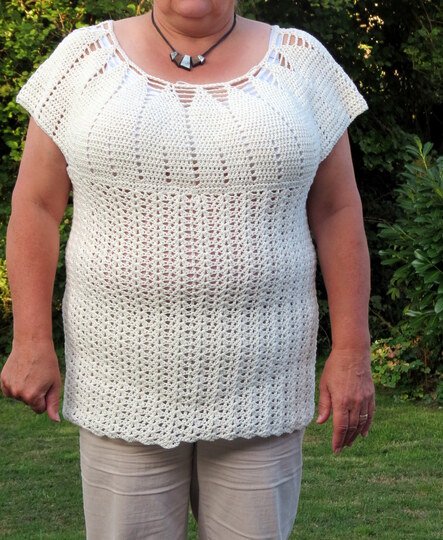Die Tunika wird von oben nach unten in Runden gehäkelt. Sie brauchen also nichts zu vernähen.