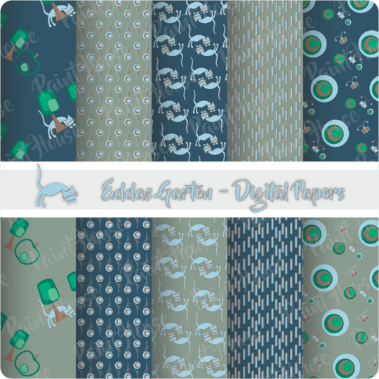 Das Set enthält 15 Dekore in zwei Farben und zwei Größen (30 x 30 cm und in DIN-A4) . Die Dateien erhältst Du als PNG mit hoher Auflösung (300 dpi).