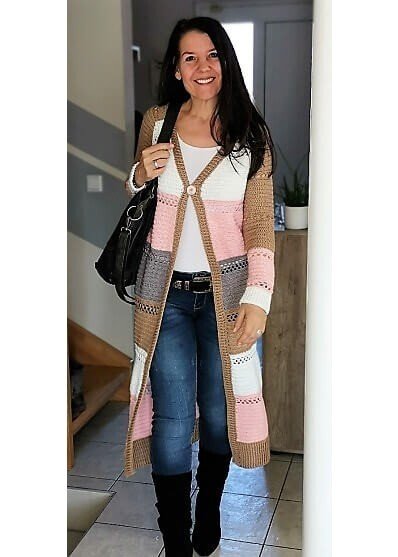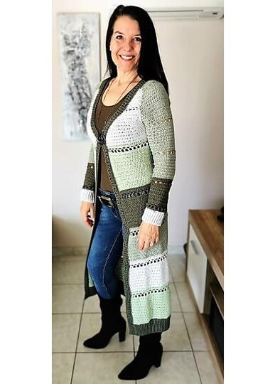 Dieser Häkelmantel ist in jeder seiner verschiedenen Farbkombinationen ist ein echter Hingucker. Er kann sowohl zur Jeans als auch elegant getragen werden. Der Mantel bietet den absoluten Woweffekt und kann in jeder beliebigen Größe gehäkelt werden. Er ist absolut anfängertauglich.