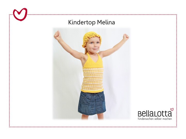 Für kleine Mädchen das ideale Top für die warmen Sommertage, denn unser Kindertop Melina is bequem anzuziehen und mit dem Verschlussband individuell zu regulieren. Mit einer weichen Bauwollmischung ist Melina angenehm auf der Haut zu tragen und fühlt sich luftig-leicht an.