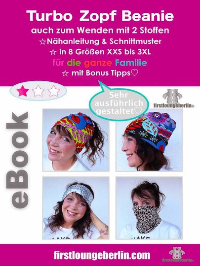 ♥♥ Turbo Zopf Beanie ist turboschnell genäht und nicht nur das, er ist so vielseitig wie kein anderer Beanie und ist auch noch zum Wenden. Die Mütze ist auf beiden Seiten offen und so kann der Zopf rausschauen und durchhängen. Als Halsschal, Stirnband, Schlauchschal, Gesichts- und Nasentuch kann er ebenso verwendet werden.Wenn es das Material zulässt kann auch einfach nur mit einem Geradstich alles fix genäht werden. Die Anleitung ist wie bei allen firstloungeberlin eBooks sehr ausführlich in Bild und Schrift und ganz ehrlich Schritt für Schritt erklärt. Anfänger können nach einer vollständigen Nähprobe sich ihr Lieblingsbeanie gestalten und fix nachnähen.♥♥