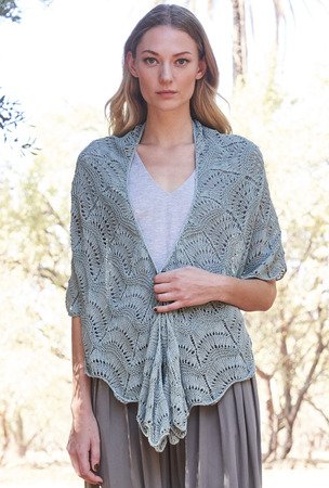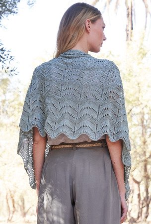 Wenn’s draußen kühl ist, leistet so eine Stola immer gute Dienste. Diese ist halbmondförmig und wird von außen nach innen im populären Pfauenmuster gestrickt. Das Garn ist weich, glatt, bringt einen schönen Fall mit und eine tolle Maschendefinition. Die Stola von außen nach innen zu stricken hat den Vorteil, dass es mit der Zeit immer schneller voran geht – auch wenn schon ein wenig Geduld gefordert ist. Nachdem der Anschlag so vieler Maschen erst einmal geschafft ist, geht es auch schon mit dem Pfauenmuster los. Die Ränder erhalten zeitgleich einen direkt angestrickten I-Cord-Rand – das sieht schön aus und nichts rollt sich mehr ein. Mit der übersichtlichen Strickschrift ist es ganz einfach, dem Muster zu folgen und auch die Abnahmen sind gleich integriert. Nachdem das Tuch fertig ist, sollte es auf jeden Fall erst einmal gewaschen und gespannt werden. Dadurch legt sich das schöne Lochmuster richtig, entfaltet seine ganze Pracht und das Tuch seine komplette Größe.
