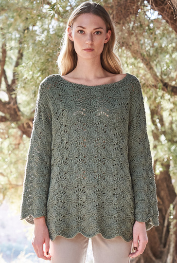 Mit seinem graden Schnitt und dem übersichtlichen Muster eignet sich dieser Pulli perfekt für Einsteiger im Stricken von Lochmustern. Abnahmen im Muster müssen lediglich bei dem Halsausschnitt beachtet werden, das Baumwollgarn gleitet angenehm über die Nadeln, welche wiederum eine ideale Stärke haben, um gut voranzukommen und gleichzeitig ideal im Handling sind. Gestrickt wird der Frühlingspulli in Einzelteilen. Nachdem alle Maschen angeschlagen sind, geht es auch schon los mit dem Ajourmuster, umrahmt von einigen kraus linken, bzw. glatt rechten Maschen. Das Lochmuster zwar ungemein wirkungsvoll, dabei aber nicht schwierig zu stricken. Die übersichtliche Strickschrift hilft zudem, stets jede Mustermasche genau im Blick zu haben. Sind alle Teile fertig gestrickt, werden erst einmal die Nähte geschlossen. Auch das ist bei diesem Pulli sehr einfach, da die kraus gestrickte Musterfolge des Rands sich sehr gut nähen lässt und man bei jeder Masche prima sehen kann, ob auch alles schön gleichmäßig zusammengenäht wird. Danach noch den Halsausschnitt umhäkeln – und fertig ist ein unkomplizierter Pulli mit effektvollem Muster!