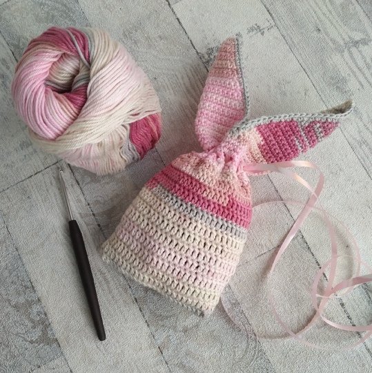 (Für das bunte Säckchen habe ich von ONline Garne - Sandy Design Color verwendet.)