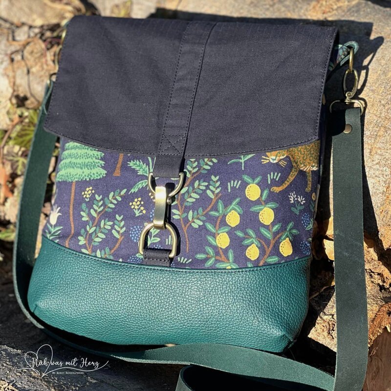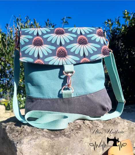 Ina ist eine sportive, praktische Umhängetasche mit Verschlussklappe, die auch von Anfängern gut umzusetzen ist. Mit ihrer mittleren Größe von 29 cm B x 32 cm H x ca. 6 cm T und der schlichten Form ist sie die ideale Alltagsbegleitung. Ina kann durch unterschiedliche Stoffaufteilungen und verschiedene Verschlusslösungen vielfältig gestalten werden. Eine Vielzahl von Innenfachmöglichkeiten wie Steckfach, Reißverschlussfach und Reißverschlusssteckfach sorgt für einen jederzeit perfekten Überblick.
