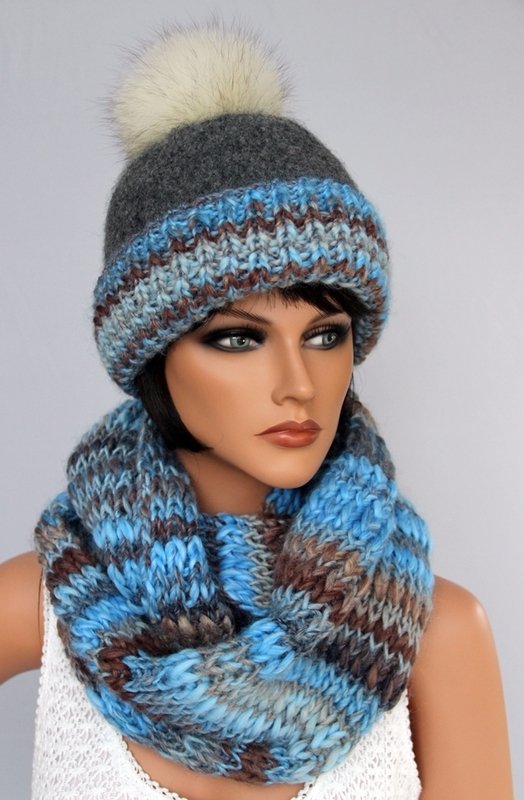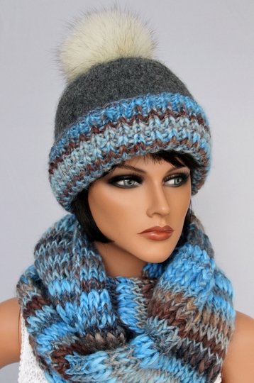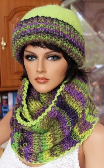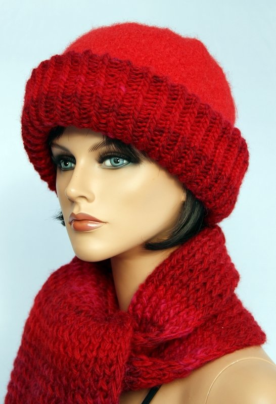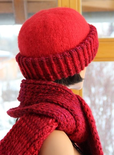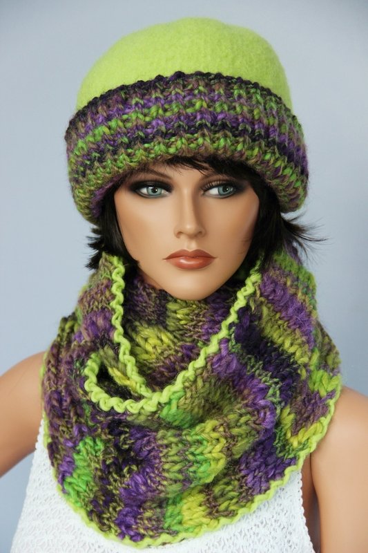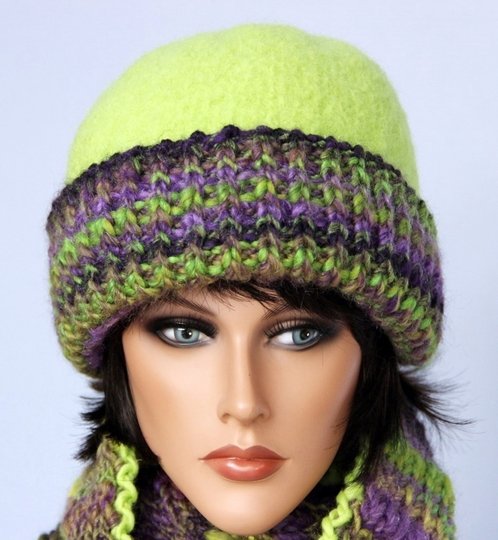 Mit dieser warmen Filzmütze und dem passenden Loop oder Schal kann der Winter kommen. Filzwolle hält angenehm warm und trocken und ist atmungsaktiv. Die Mütze ist für Erwachsene wahlweise in zwei Größen (S/M oder L/XL) strickbar. Wir stricken zuerst den Filzhut und geben ihn zum Filzen in die Waschmaschine. Der leicht feuchte Filzhut wird danach in Form gezogen. Der bunte Rollrand wird separat gestrickt und an den in der Zwischenzeit getrockneten Filzhut angenäht. Das Set wird durch einen Loop oder Schal komplettiert.