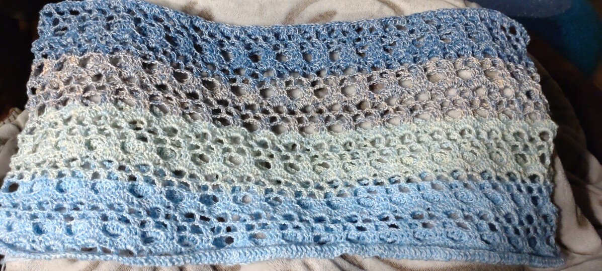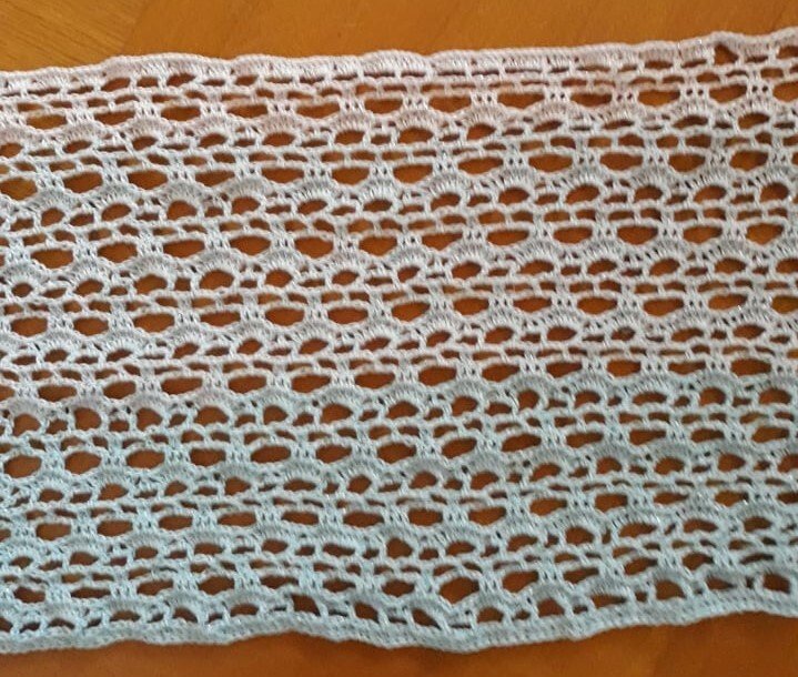 Ein Schal, eine Stola oder doch ein Tischläufer – mit dieser Anleitung ohne Probleme möglich. Hier entscheidest auch nur Ihr, für Euch selber, ob das Muster in der Breite oder in der Länge gehäkelt wird.