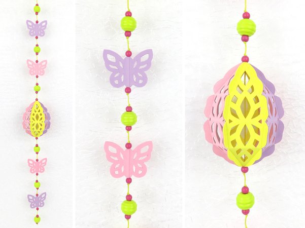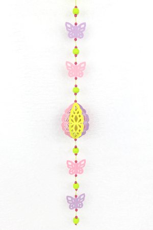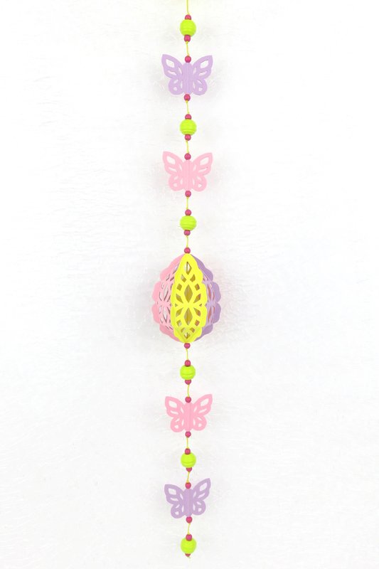 Diese Dekokette ist ca. 54 cm lang, das Ei ist ca. 9 cm, die Schmetterlinge - ca. 4 cm hoch.