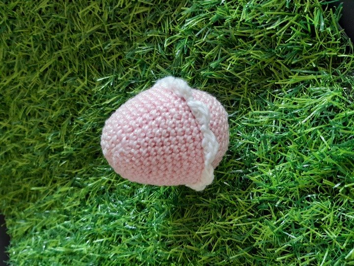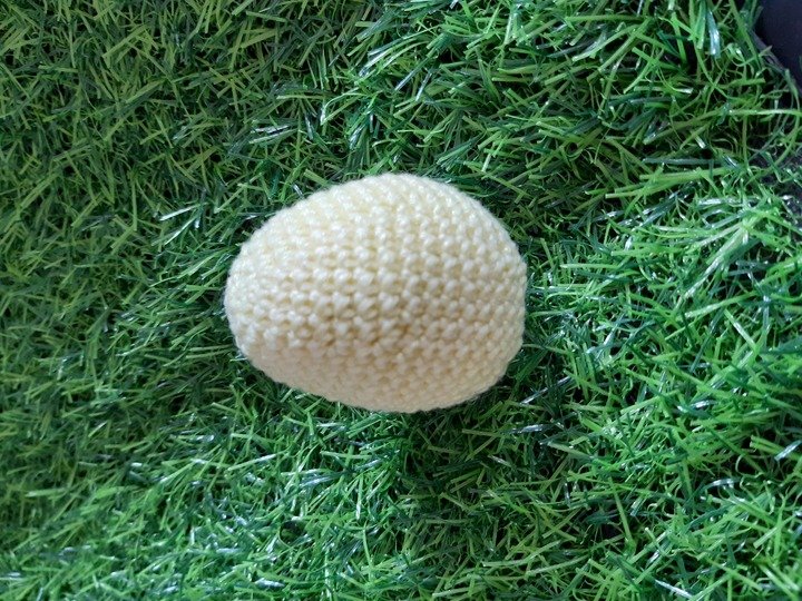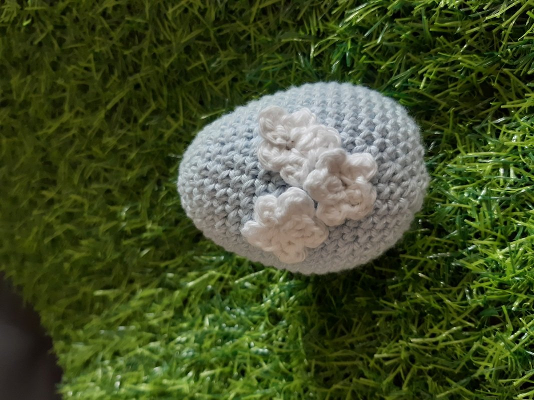 Die Eier sind zwischen 6 und 8 cm hoch, je nachdem welche Wolle benutzt wird und wie fest bzw. locker du häkelst.