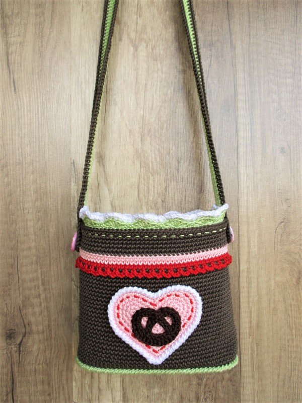 Die ausführliche und reich bebilderte Anleitung erklärt Dir auf 16 Seiten mit insgesamt 60 Bildern, wie Du Deiner Tochter, Enkelin, Nichte, Deinem Patenkind ... diese zuckersüße kleine Tasche häkeln kannst ... natürlich ist die Tasche auch für "große Mädchen" geeignet ♥