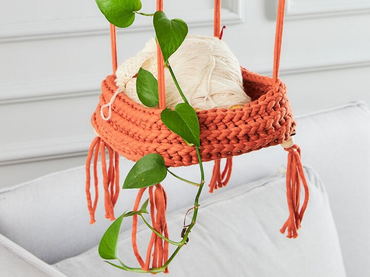 Diese wunderbare praktische und gleichzeitig schöne Häkelnkörbchen ist vielseitig verwendbar. Als Blumenampel oder als kleine Ablage neben einem Sessel, hübsch ist es auf jeden Fall. Dabei ist es ganz einfach zu machen. Der Stand kommt durch den Boden, der aus Holzplatten besteht.