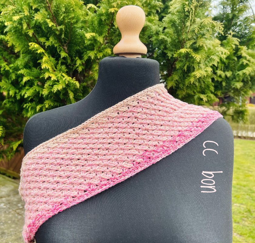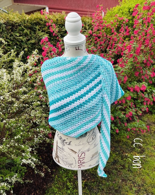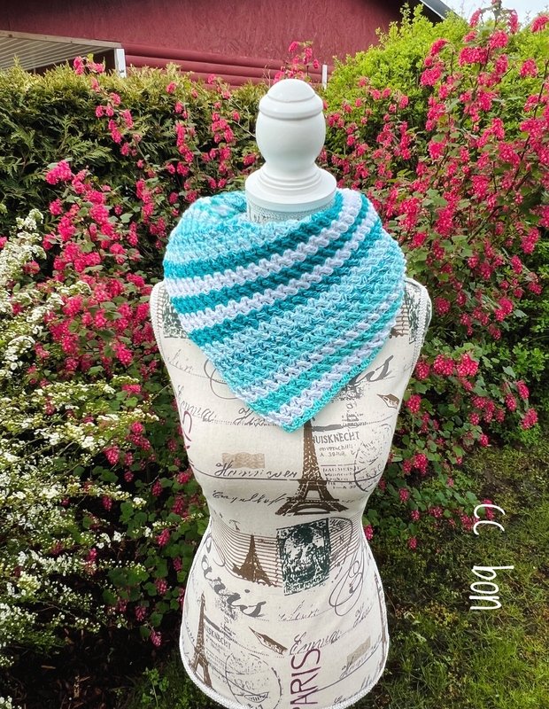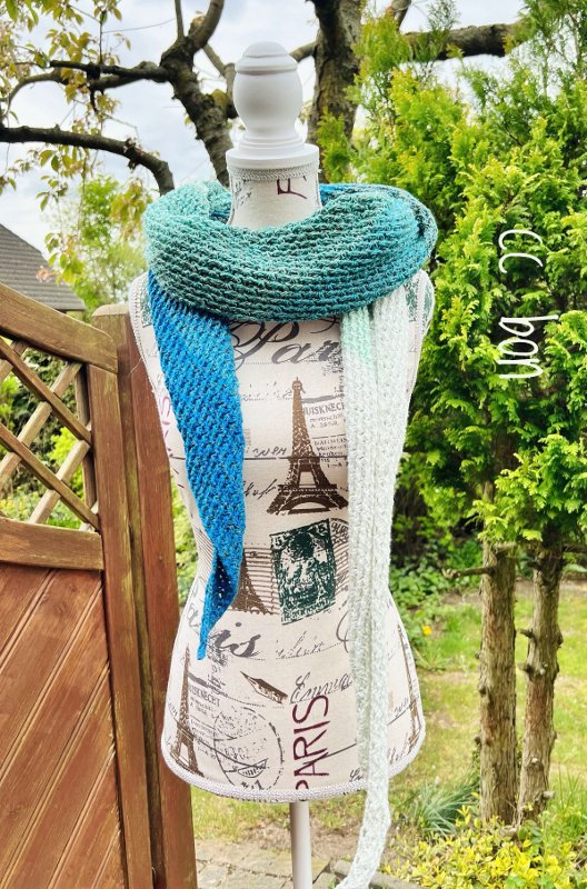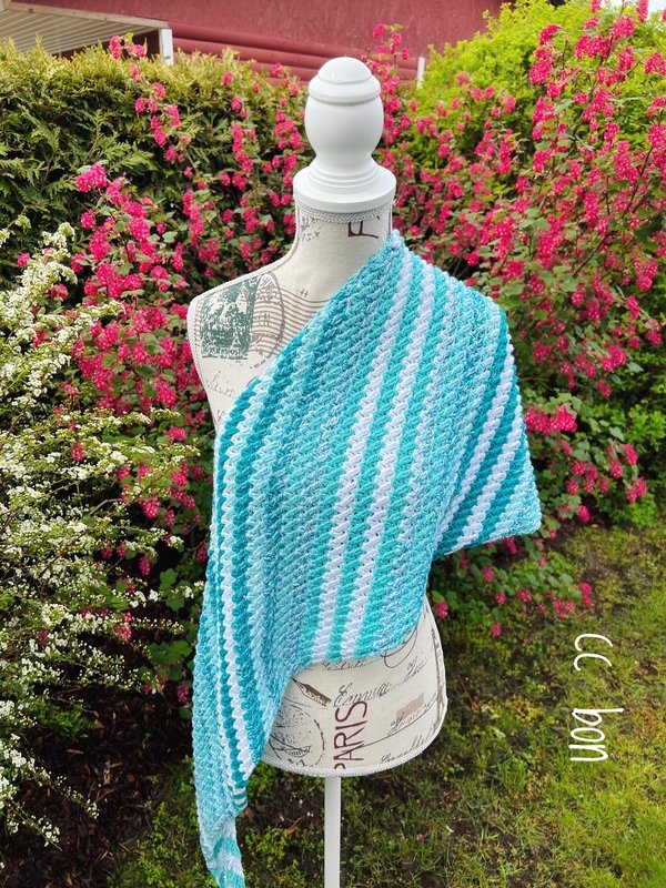 Als Bonus-Ergänzung gibt es für dieses Muster eine Anleitung inklusive Häkelschrift für ein flaches, asymmetrisches Dreieckstuch.
