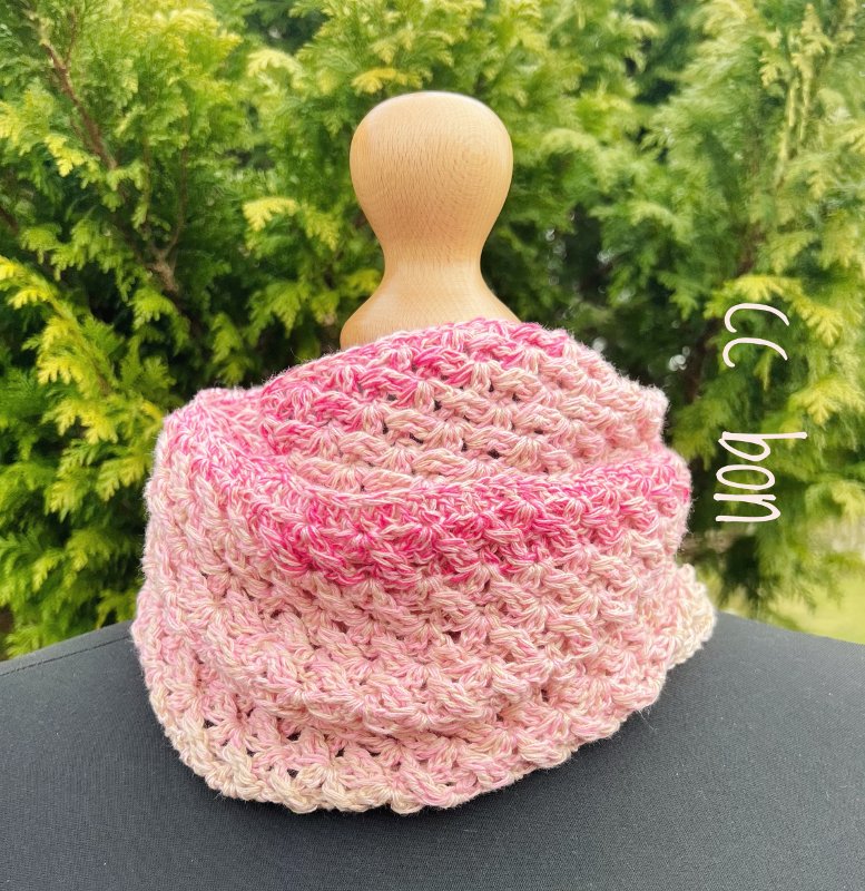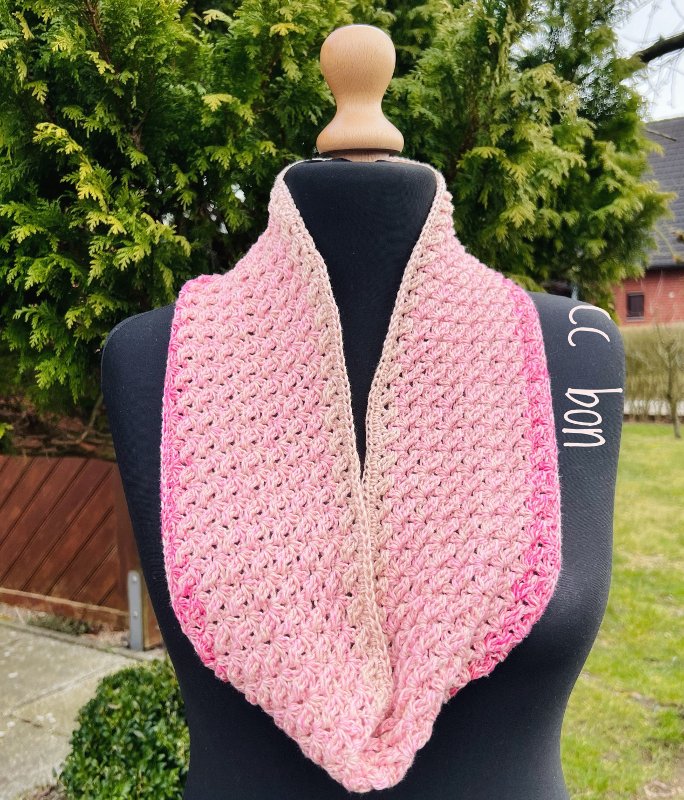 In der vorliegenden Anleitung beschreibe ich das Häkeln eines Loops, der in einem Stück von unten nach oben in Runden gearbeitet wird. Die Runden sind maschenweise beschrieben. Eine Skizze für das Muster ist als Häkelschrift beigefügt. Der Loop kann in beliebiger Größe gehäkelt werden. Natürlich kannst du das Muster auch für andere Häkelstücke verwenden. Ich habe es vor einiger Zeit schon in einem Seelenwärmer verarbeitet.