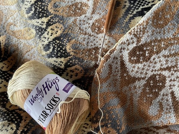 Jacquardmuster, rechte und linke Maschen, Häkelkante