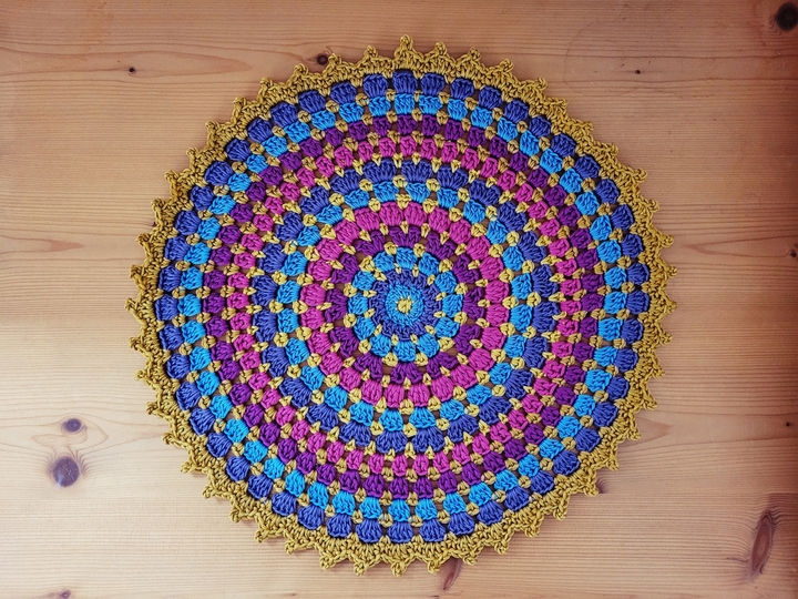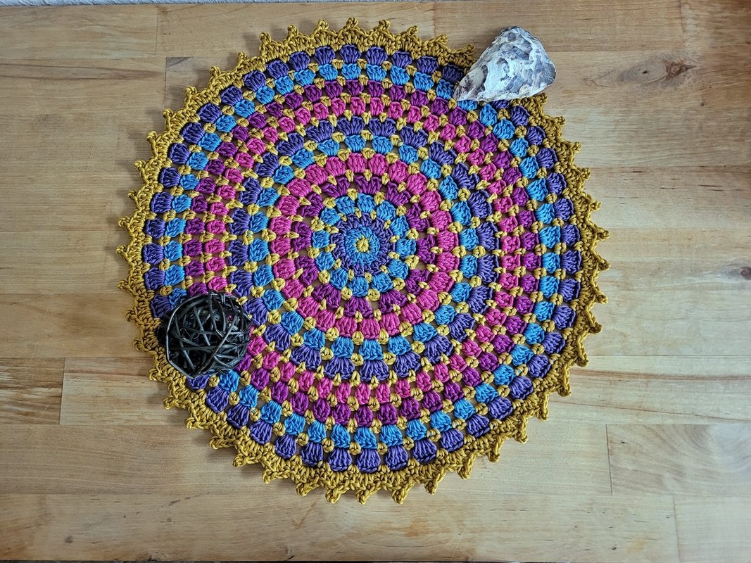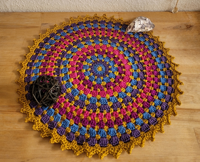 Ein tolles Mandala, nur aus Garnresten gearbeitet.