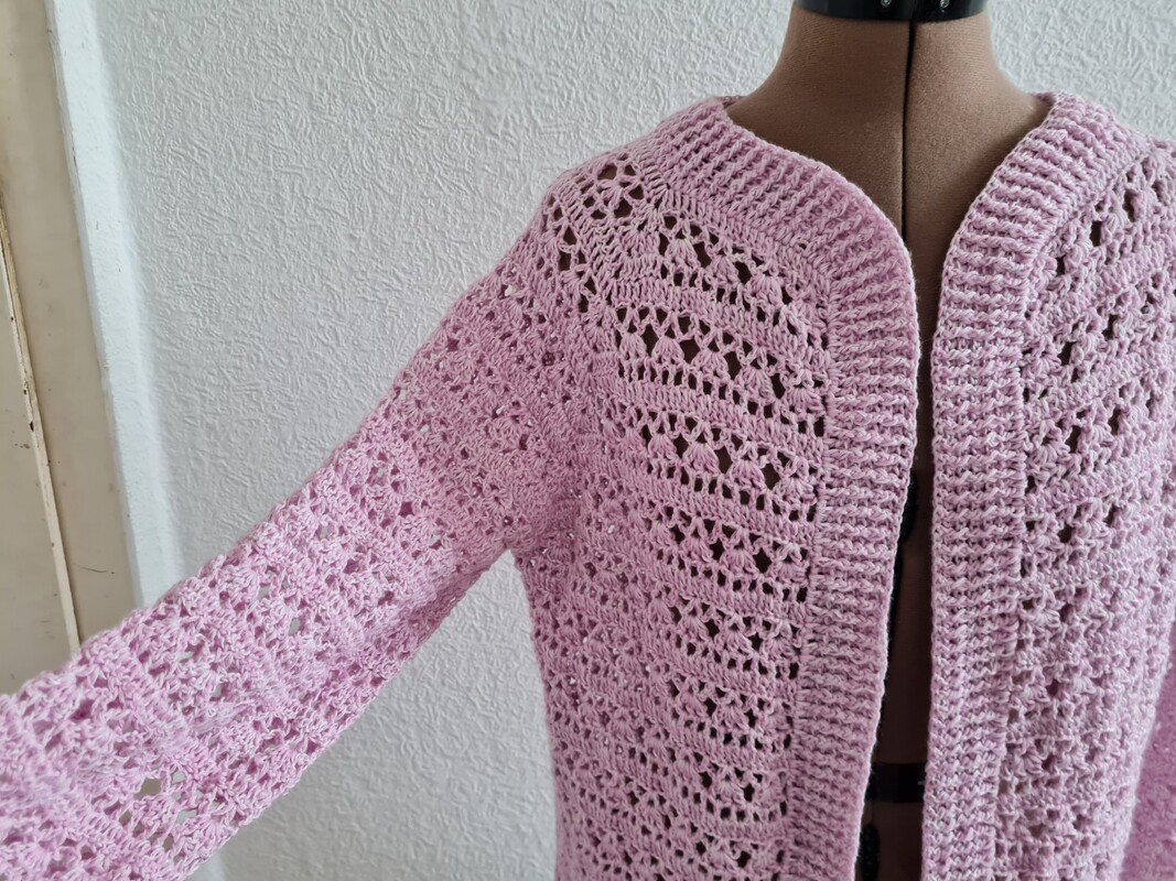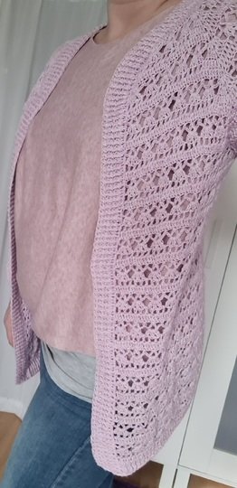 Der Cardigan "Rosalie" wird in RVO Technik an einem Stück gehäkelt (die Ärmel werden zum Schluss angehäkelt) und kann somit leicht an jede Größe angepasst werden. Die Jacke kann kurz oder lang gearbeitet werden, ganz wie ihr es mögt.