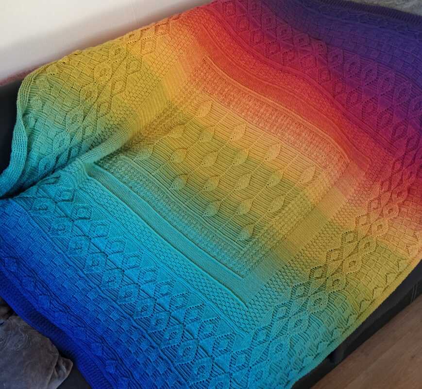 Die Decke wird es in 2 Varianten geben, beide werden in Hin-und Rückreihen gehäkelt, aber die Anordnung vom Muster ist unterschiedlich.