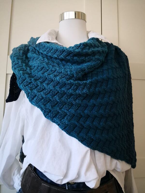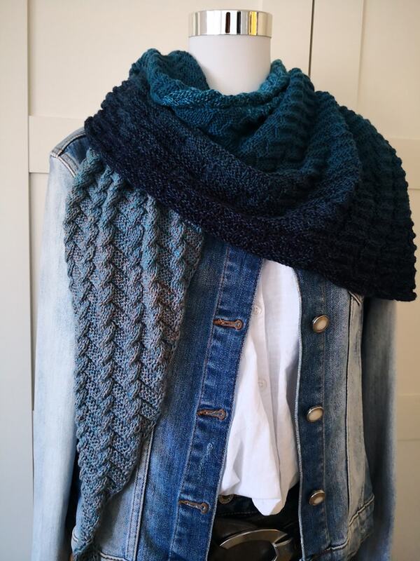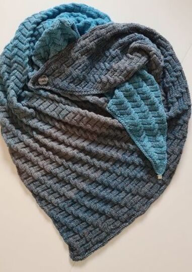 Das Muster von Shioma besteht nur aus rechten und linken Maschen mit einem schönen 3 D Effekt. Der Rapport prägt sich schnell ein und ist Anfänger und Fernseh tauglich. Das Tuch hat eine schöne Vorder- und Rückseite, ist zeitlos und kann auch gut von Männern getragen werden.