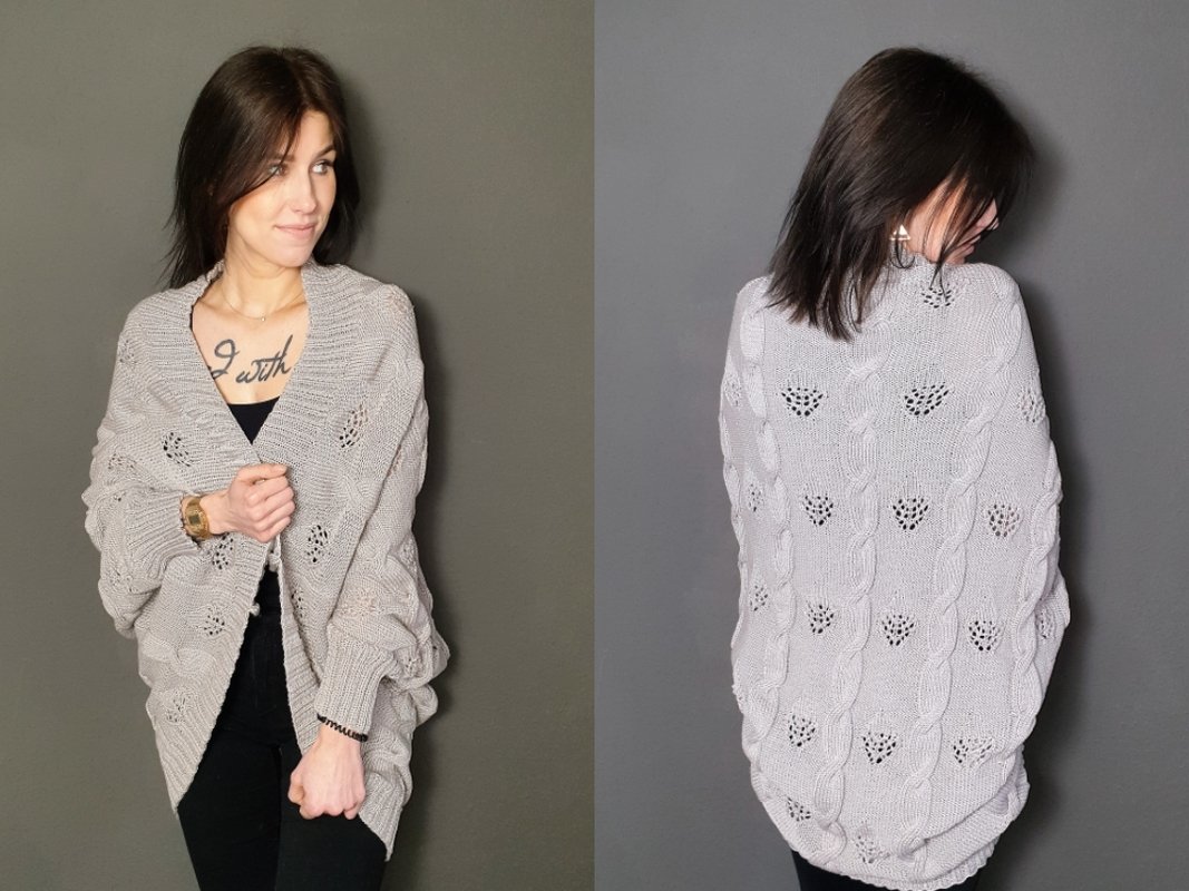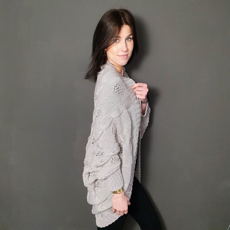Wer den Seelenwärmer etwas legerer möchte bei Größe 36/38, kann die größere Variation wählen.