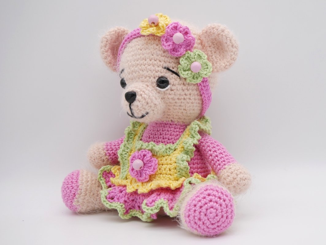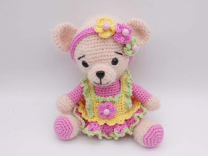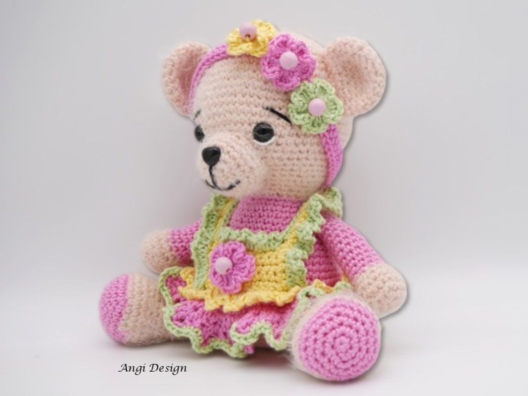 Häkelanleitung für das Bärenmädchen im Blüten Kleid mit Haarband