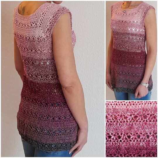Es wird in einem Stück, von oben nach unten, mit Raglanlinie gearbeitet und somit kannst Du ganz individuell entscheiden wie lang es werden soll.