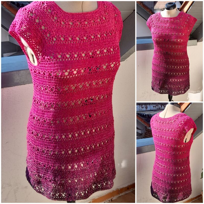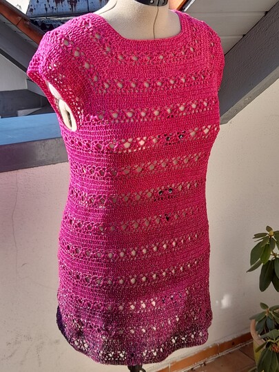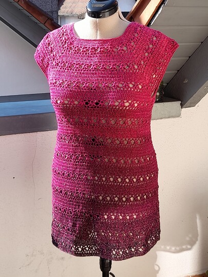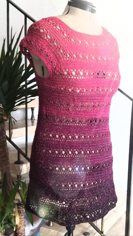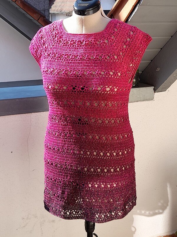 Mit der Anleitung "Bella Donna" kannst Du dir ein Kleid oder ein Long-Top häkeln.