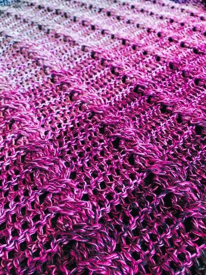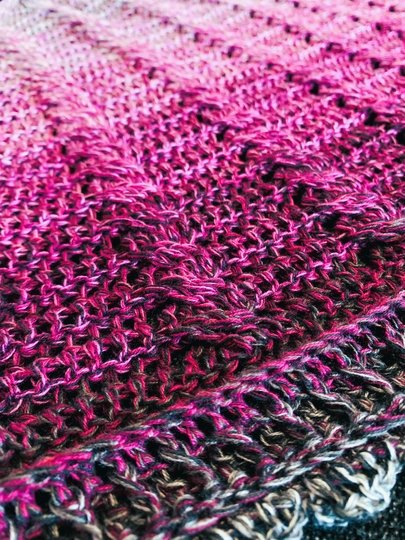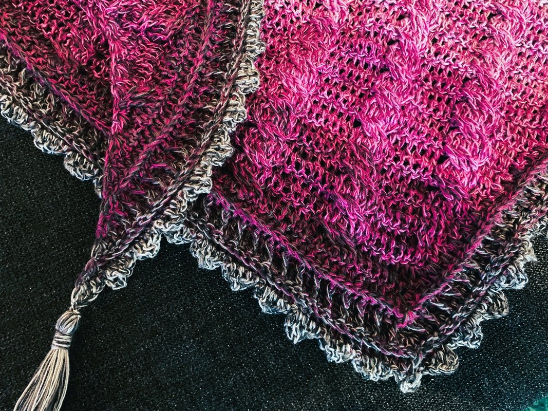 Wer kuschelige Tücher mag, mit etwas verspieltem Rand, Relief-Maschen und einem Muster, das man sich schnell merken kann (und das somit fernsehtauglich ist), ist hier genau richtig!