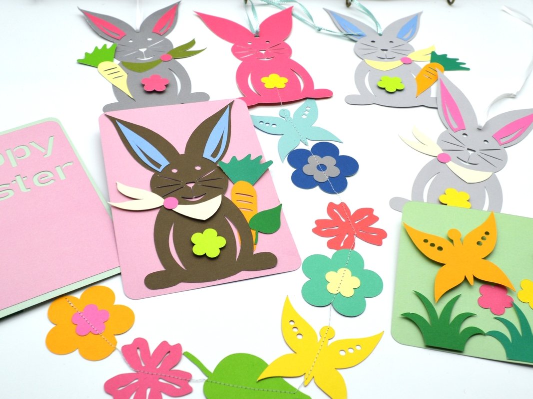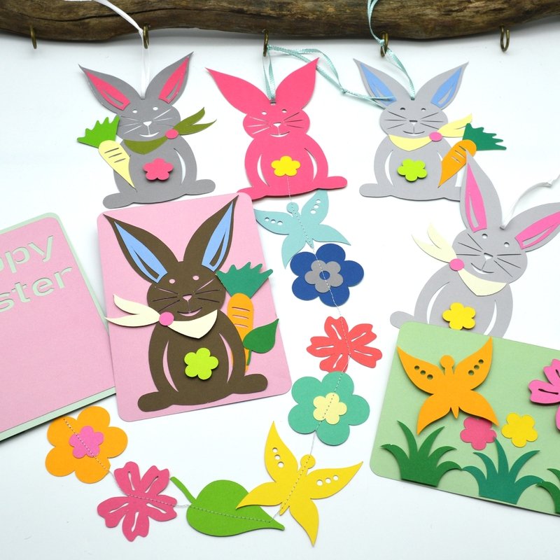 Süßes, einfaches und schlichtes SET zm Thema Frühling. Ran an den Schneideplotter, schnell entstehen Schmetterlinge, Blumen, Blätter, Hasen oder auch eine Postkarte, die ganz individuell gestaltet werden kann.