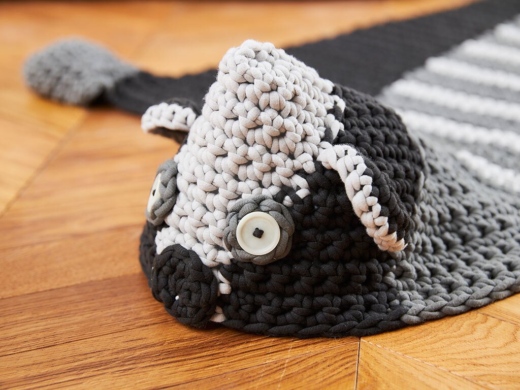 Diese süße Krabbeldecke werden die Babys lieben. Sie ist schön weich, aber trotzdem robust und pflegeleicht. Das Garn Woolly Hugs HOME ist auch schön dick (Nadelstärke 8-10 ), so das es mit den festen Maschen zusammen eine schöne gepolsterte Struktur ergibt. Auf der Decke gibt es auch viel zu entdecken. Die Knöpfe als Augen sind gut zum begrabbeln, an den Ohren und Pfoten kann man sich schön festhalten und die Nase ist einfach zum reinbeißen knuddelig.