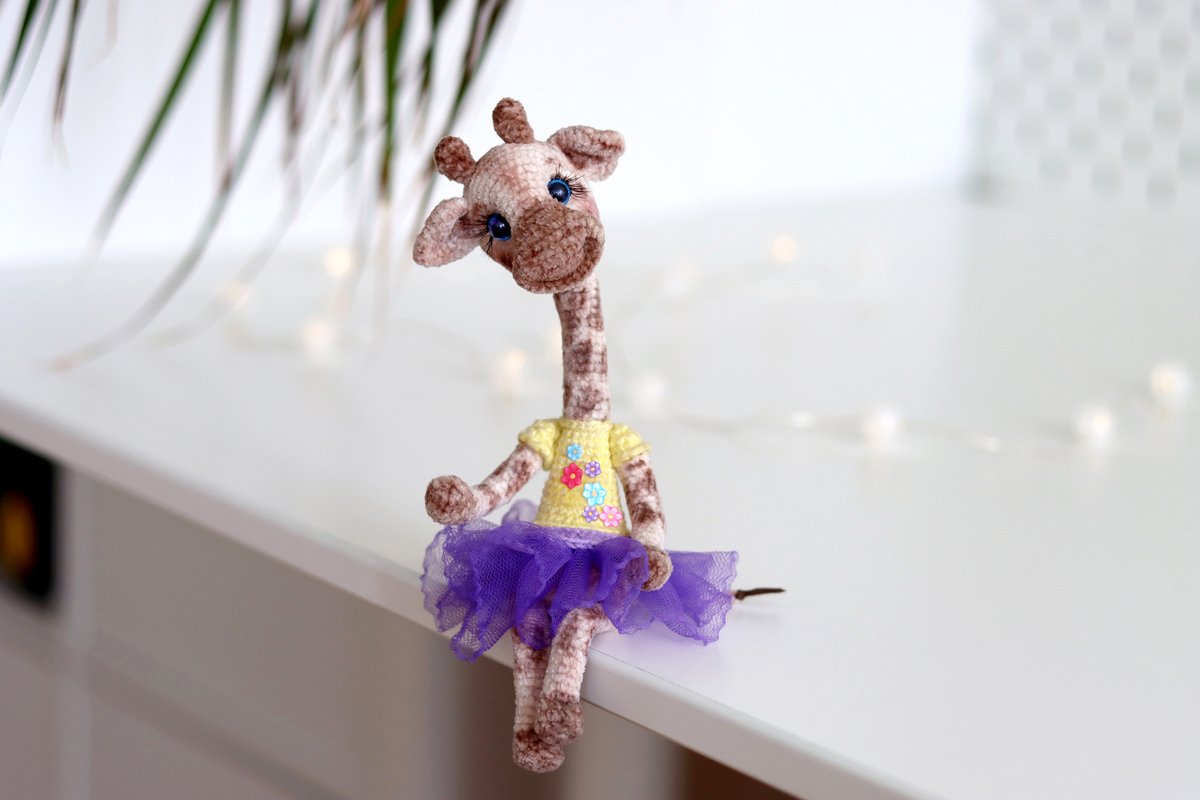 Die Giraffen sind ca. 20- 23 cm groß. Je nach Wollstärke können sie kleiner oder größer werden.