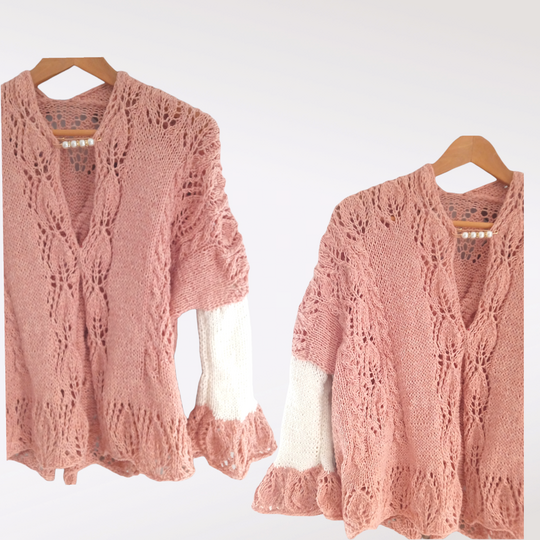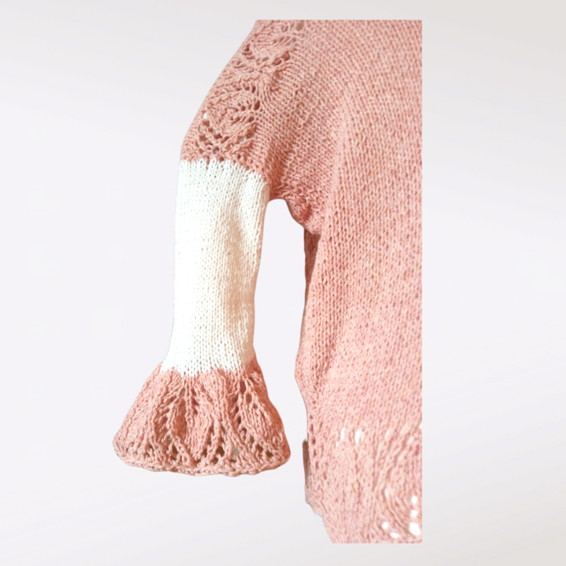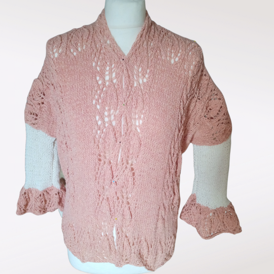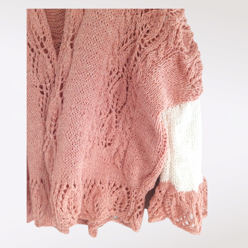 Dies ist die ideale Strickjacke für Frühling und Sommer. Eine romantische und verspielte Strickjacke für viele Gelegenheiten.