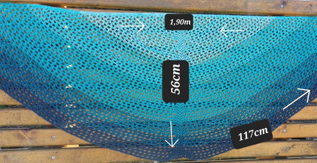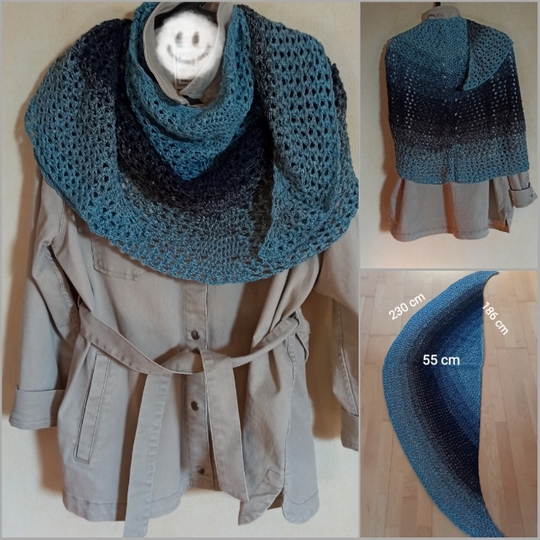 Individuell, da das Tuch beliebig groß gehäkelt werden kann.