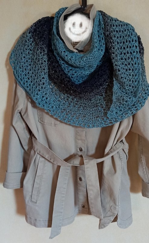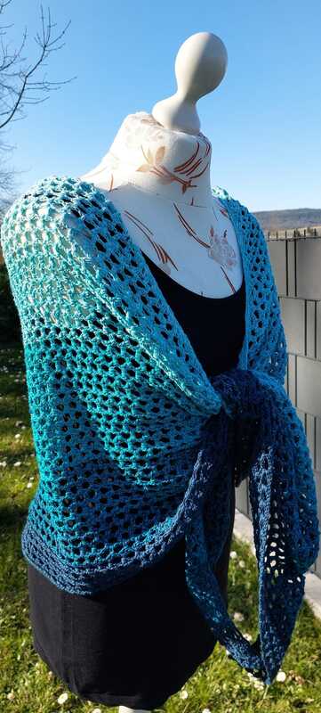 nach seiner Form bekommen und kann auch gut als Stola getragen werden.