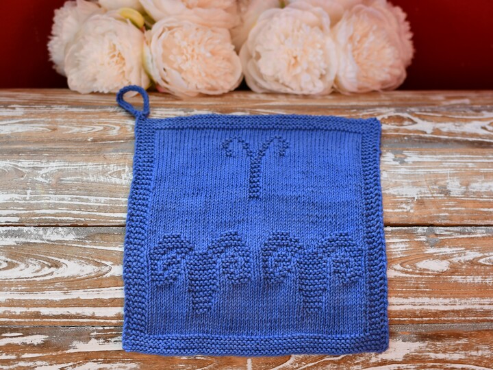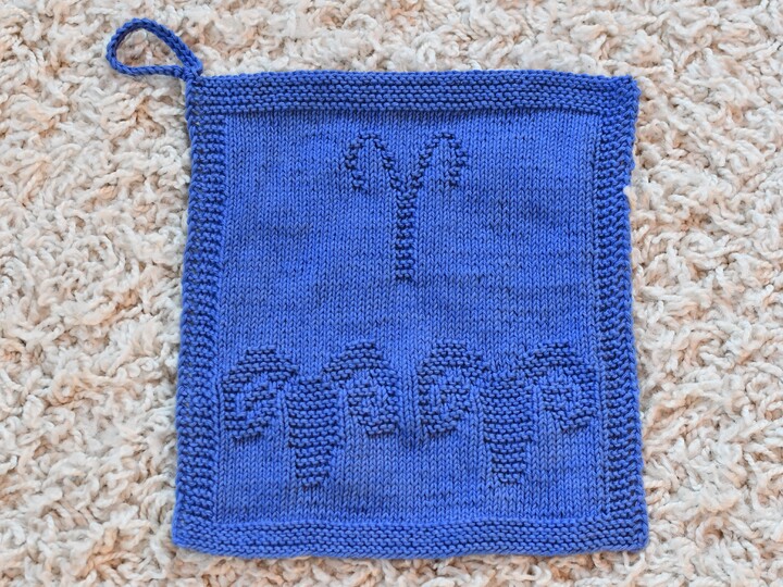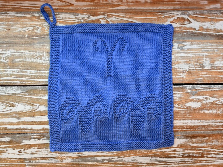 Zum Geburtstag, zu Weihnachten oder einfach als kleine Aufmerksamkeit kannst Du mit diesem Motiv einem lieben Menschen im Sternzeichen Widder eine Freude machen. Je nachdem, welches Garn Du verwendest, kannst Du ein Spültuch oder einen sanften Waschlappen stricken. Garnvorschläge für die verschiedenen Projekte findest Du weiter unten. Nachgestrickt werden kann das Tuch ganz einfach nur mit rechten und linken Maschen.
