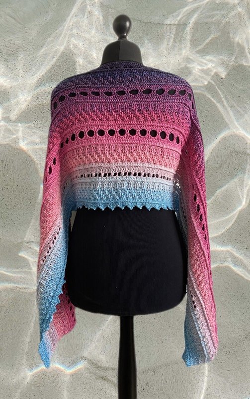 Die Stola wird in Hin- und Rückreihen gehäkelt und besteht aus 3 verschiedenen Mustern, die nach belieben abwechsend gehäkelt werden können.