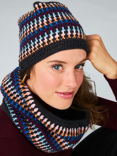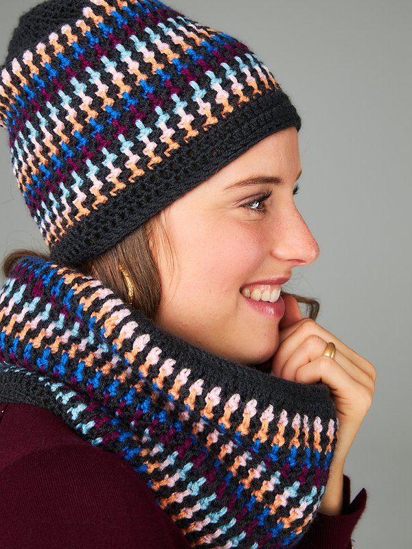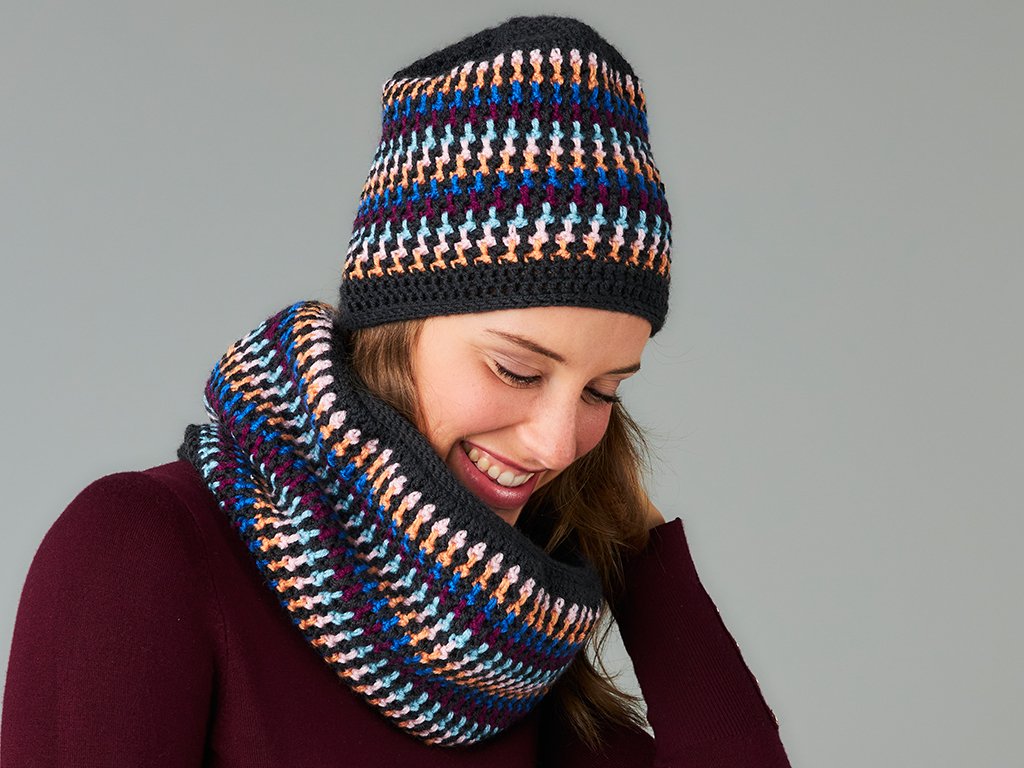Dieses schöne farbenfrohe Set ist aus einem besonderen Garn. Es gibt sie in 24 schönen Farben und für dieses Set habe ich gleich 6 Stück ausgewählt. Natürlich sind auch andere Farbkombinationen je nach Geschmack möglich. Gehäkelt wird immer in Runden und in jeder Runde wechseln wir die Farbe. Dadurch ensteht dieses schöne Muster.