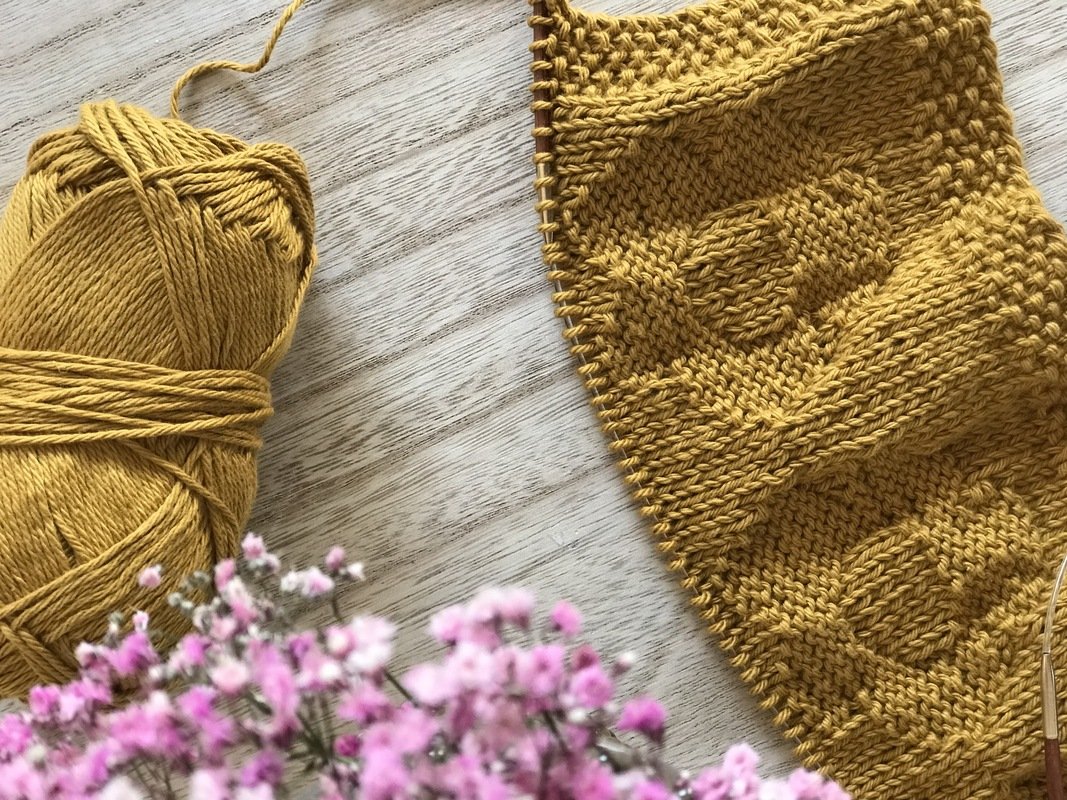 Ich habe mit 100 % Organic Cotton 8/4 von Sostrene Grene gestrickt. Achte bei der Garnauswahl darauf, dass die Qualität, aus hygienischen Gründen, bei 60 Grad maschinenwaschbar ist.