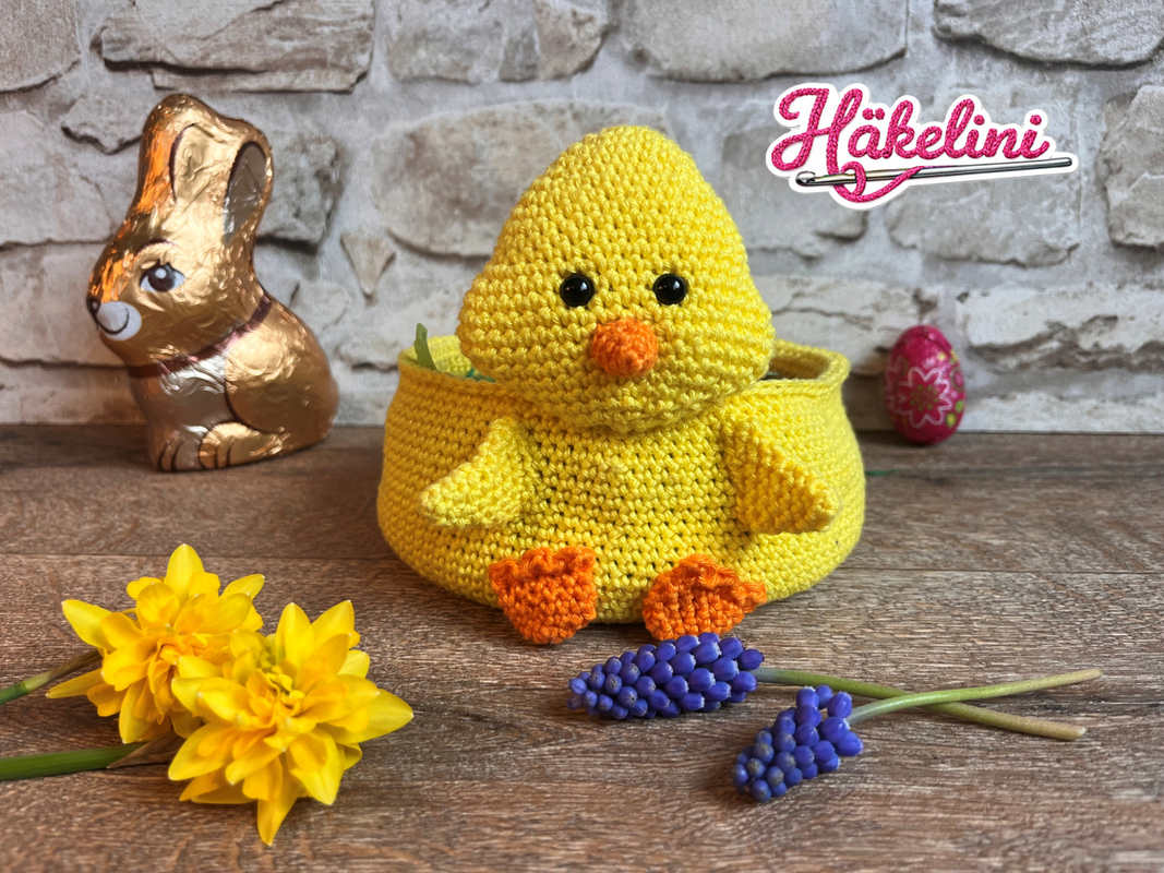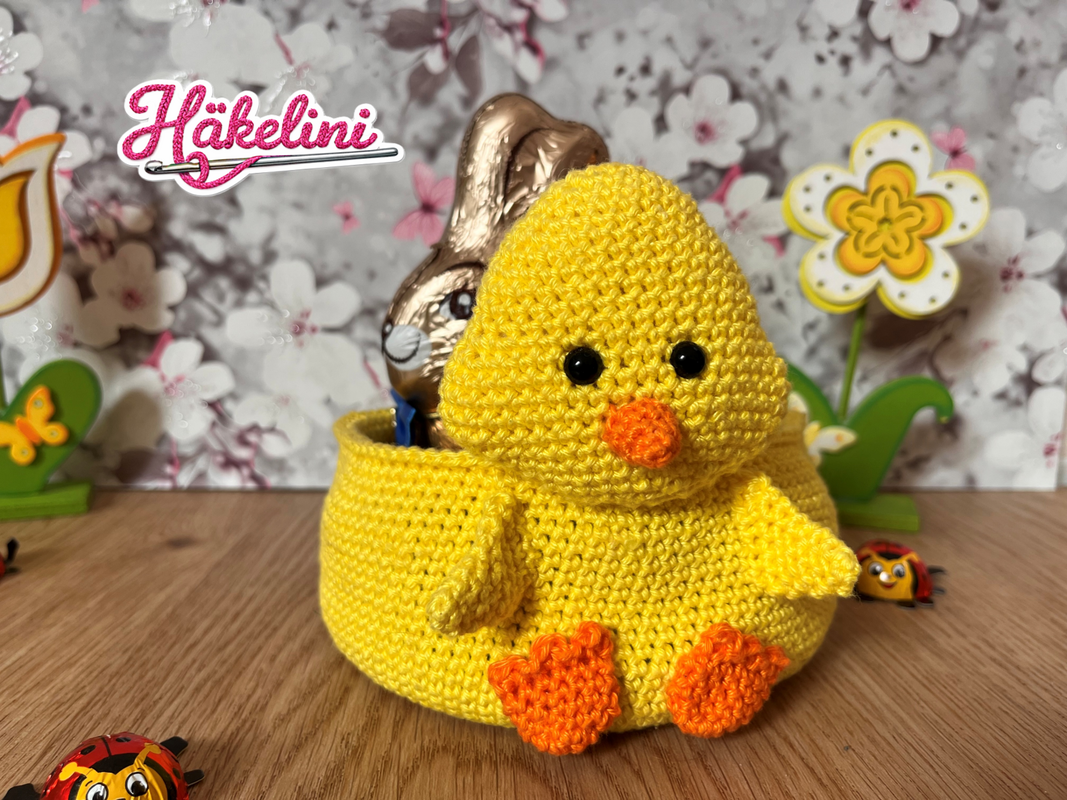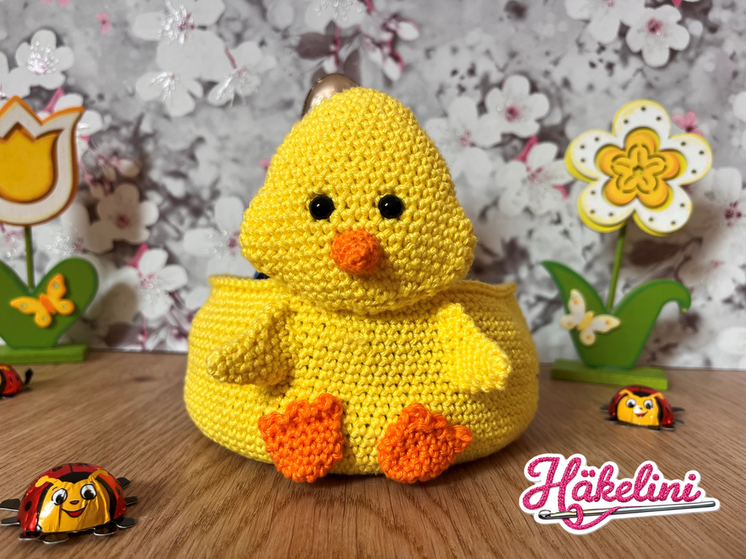Das Küken bietet viel Platz für Ostereier, Schokolade oder kleine Osterüberraschungen.