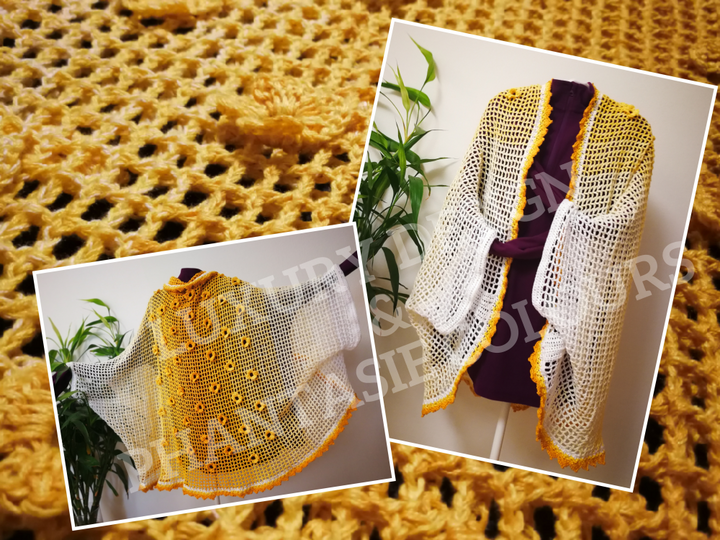 Es sind 3 professionell erstellte Häkelschriften enthalten, für das Grundmuster, die Blumen(diese werden gleich mit eingehäkelt) und die Borte.