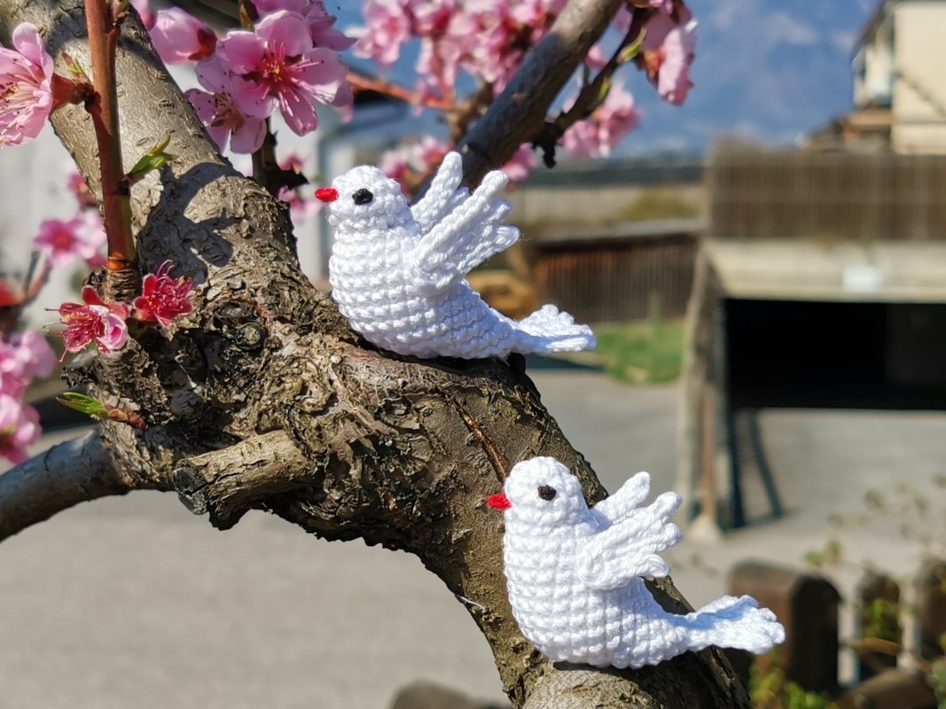 Es dauert ungefähr 2-3 Stunden, um eine Taube zu häkeln.