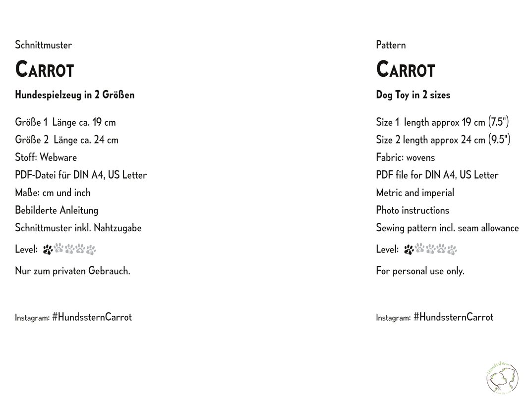 Das kostenlose Schnittmuster CARROT 🥕 für ein Hundespielzeug in Karottenform.