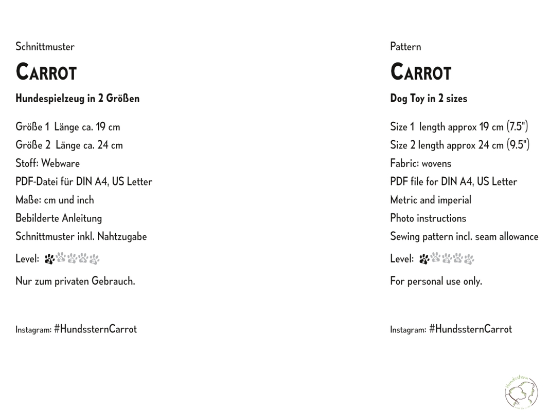 Das kostenlose Schnittmuster CARROT für ein Hundespielzeug in Karottenform.