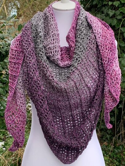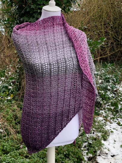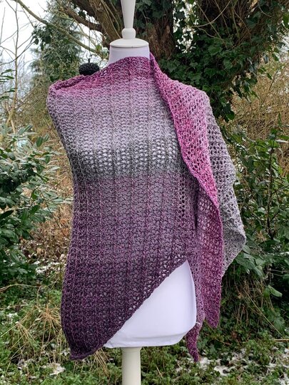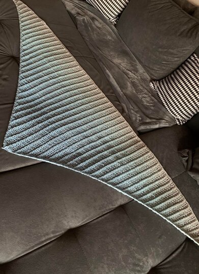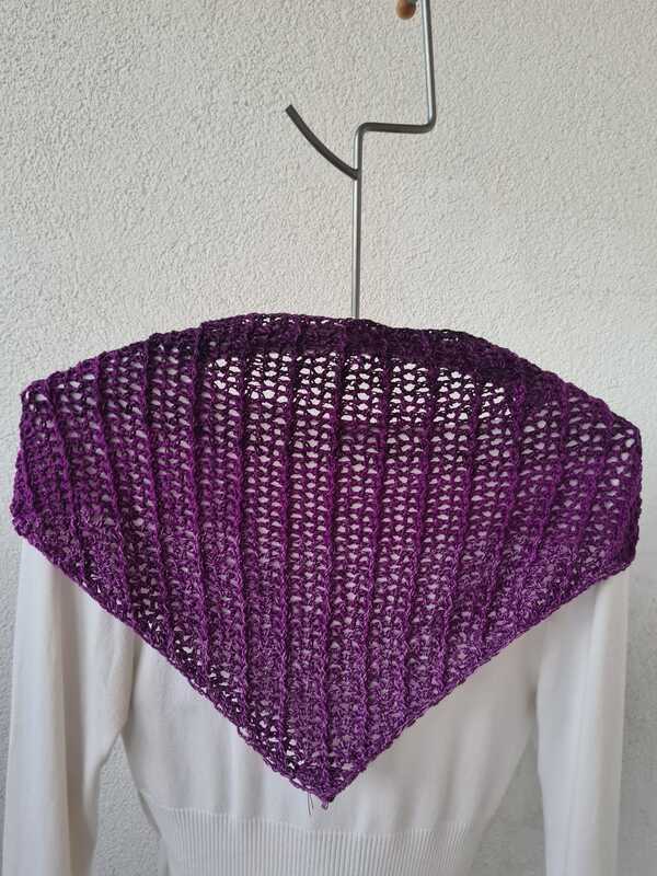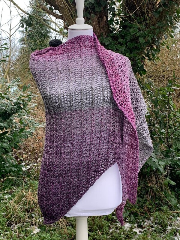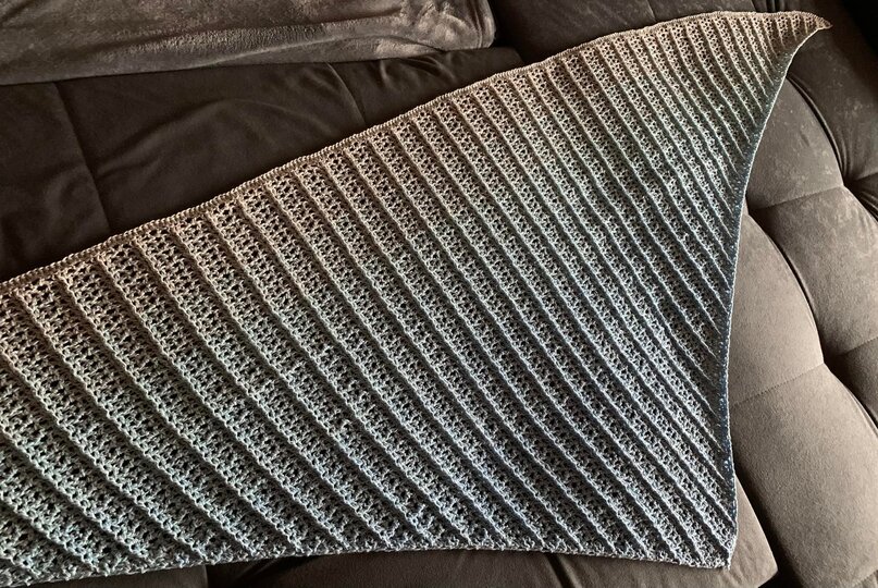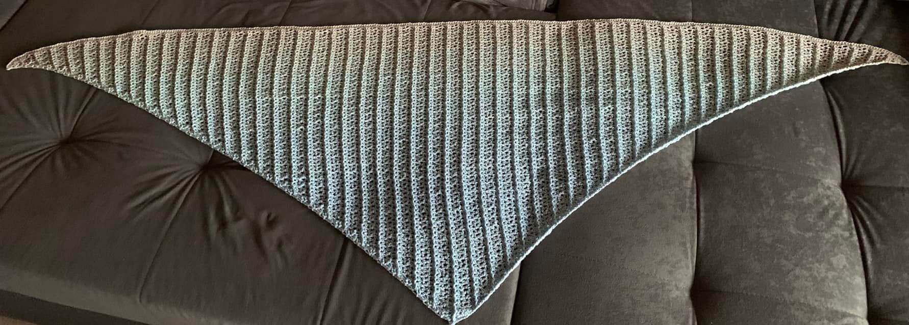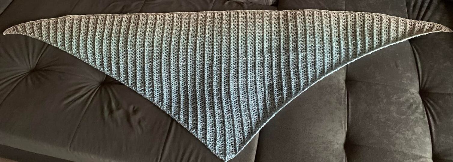 Mystic Falls wird von unten nach oben gehäkelt. Formmäßig entspricht es am ehesten einem klassischem Dreieckstuch.