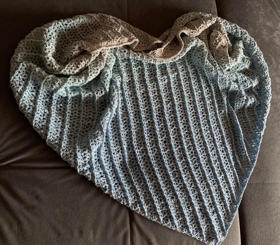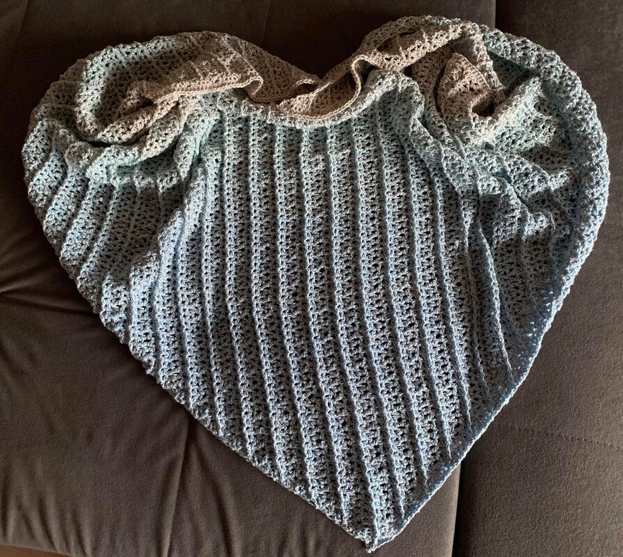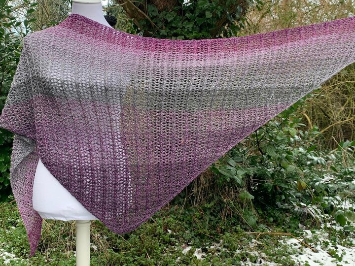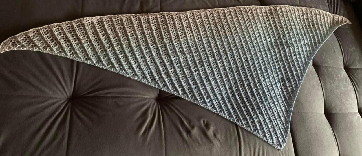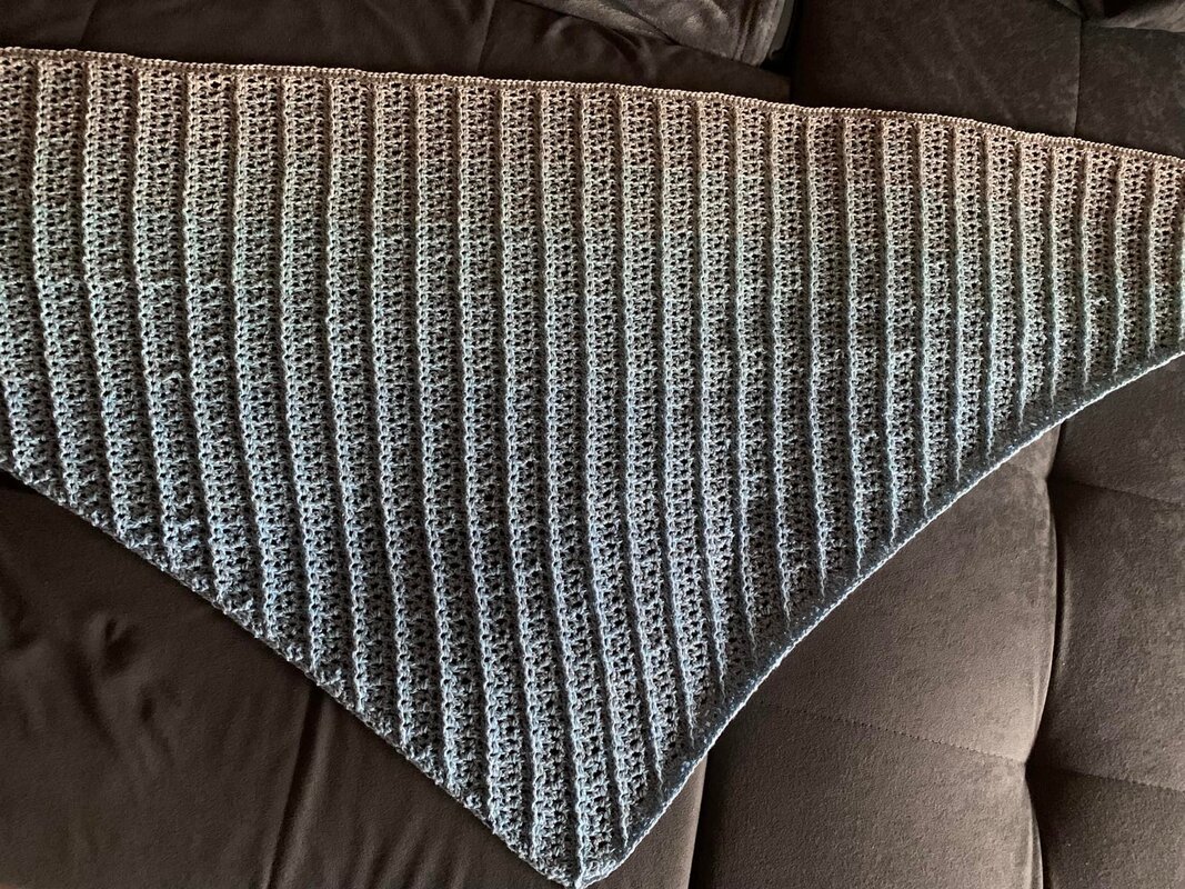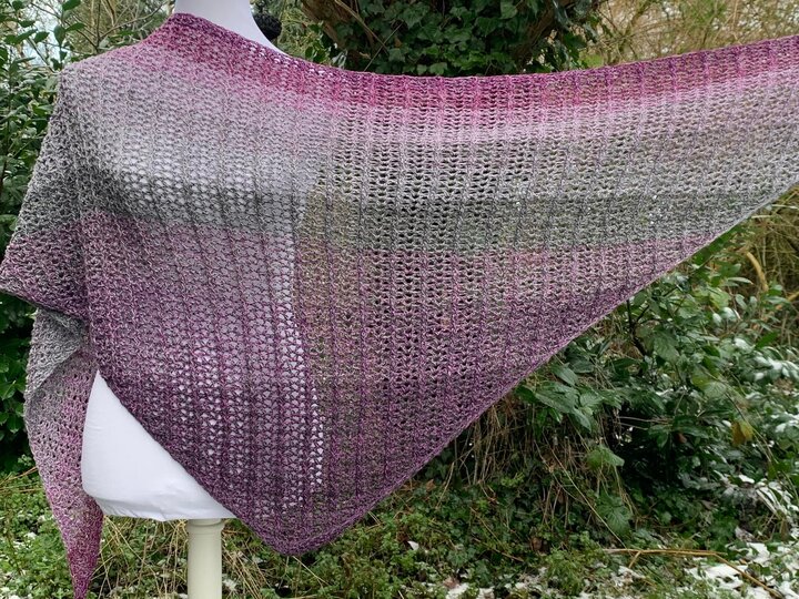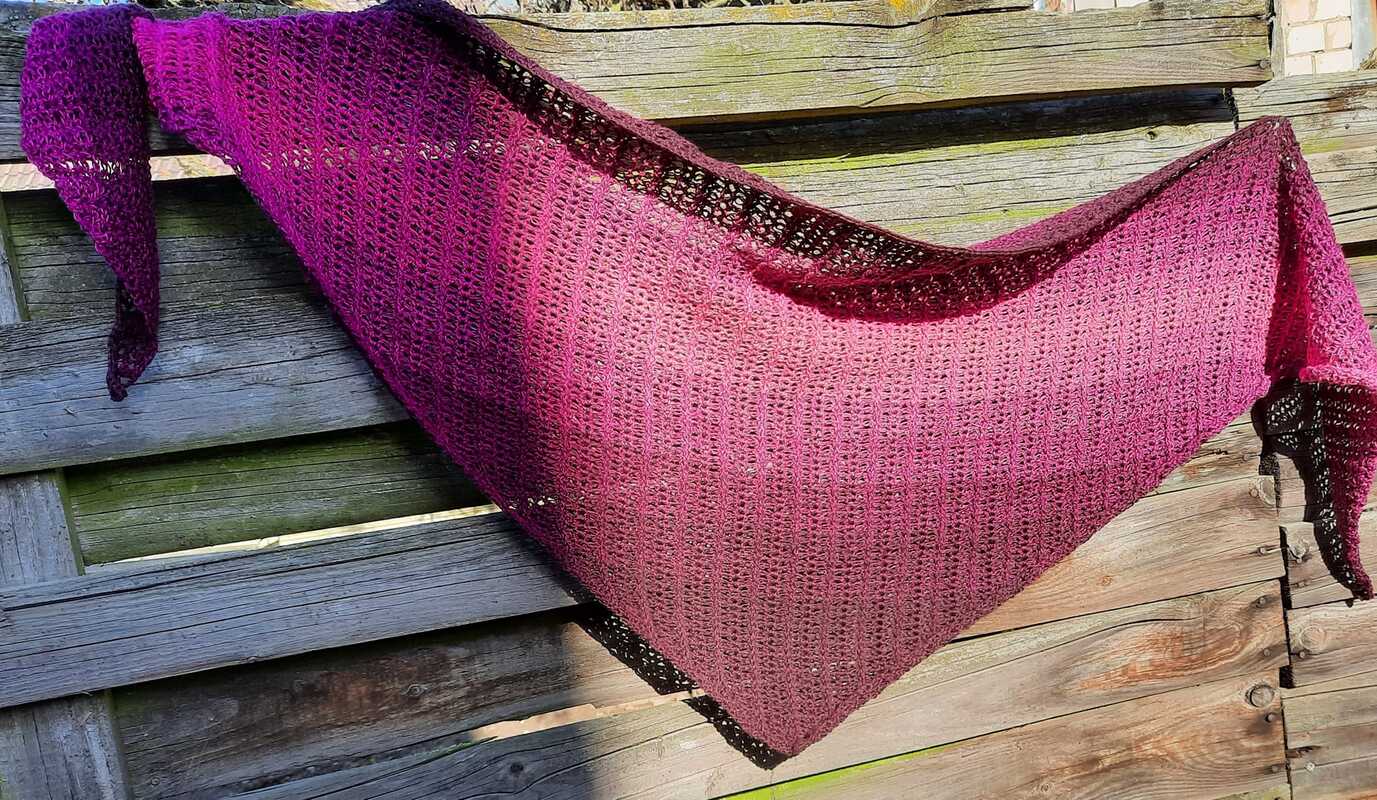 Mystic Falls wird von unten nach oben gehäkelt. Formmäßig entspricht es am ehesten einem klassischem Dreieckstuch.