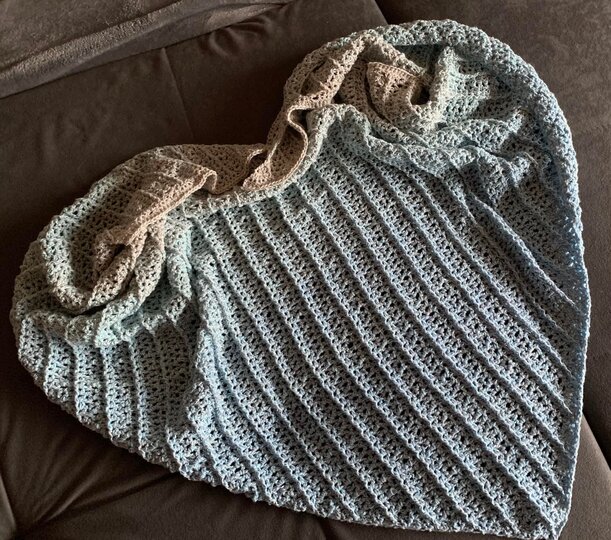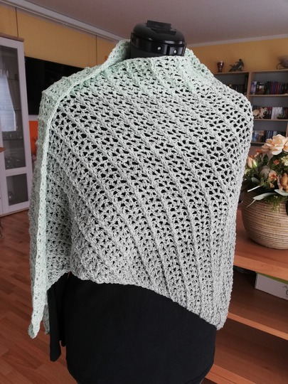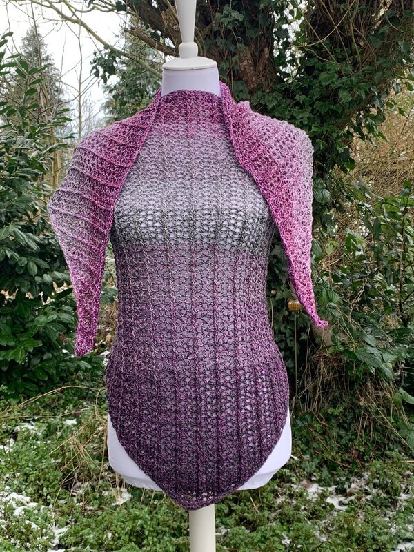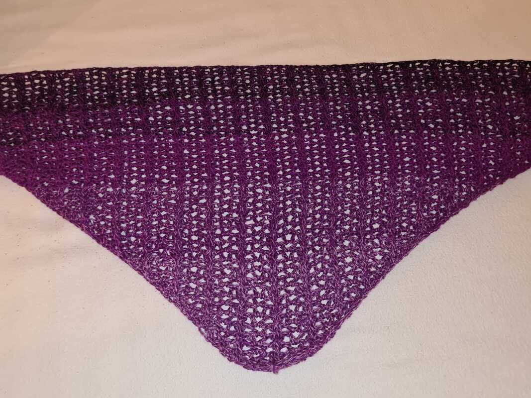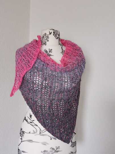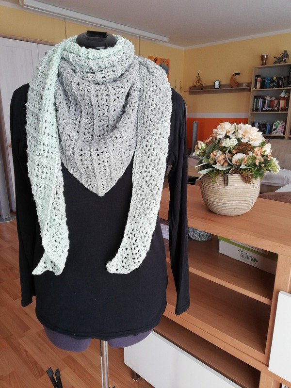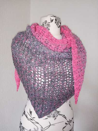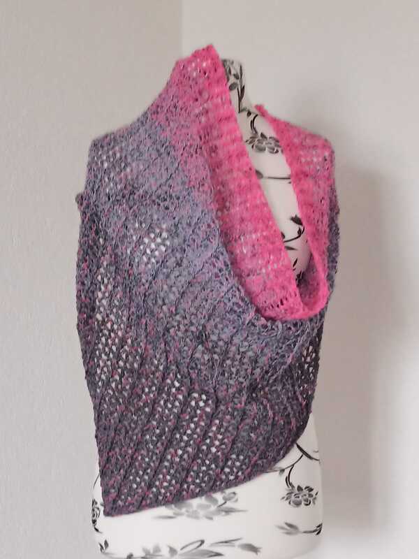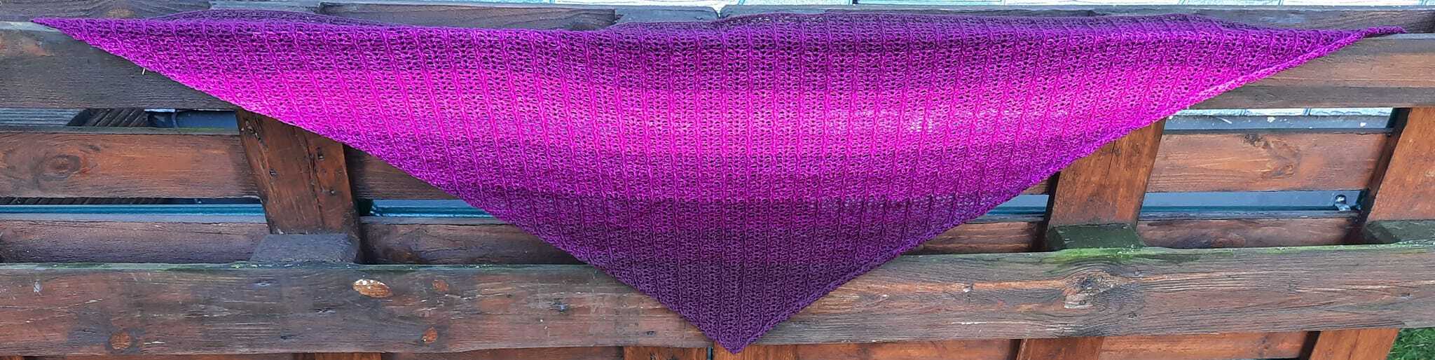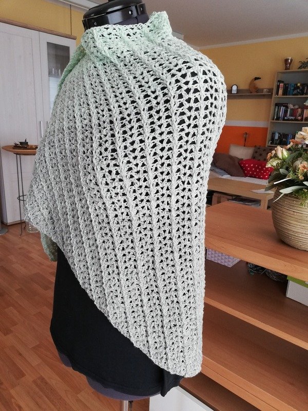 Mystic Falls wird von unten nach oben gehäkelt. Formmäßig entspricht es am ehesten einem klassischem Dreieckstuch.