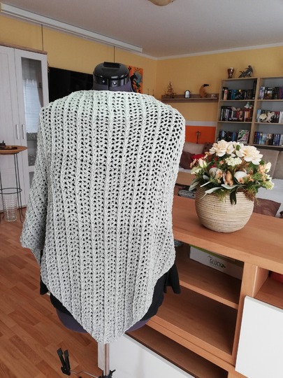 Das Tuch erreicht bei einem Verbrauch von 1000m mit NS 4,0 ca 190x62cm. Es ist beliebig erweiterbar + dadurch an jede Größe anpassbar.