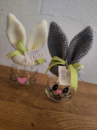 Du erwirbst hier lediglich die Häkelanleitung jedoch NICHT die fertigen Hasengläser.