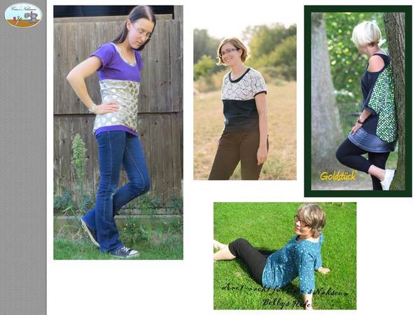 Zudem sind im Schnittmuster jeweils 3 verschiedene Ärmellängen, Halsausschnitte und Gesamtlängen enthalten. Eine Teilung im Brustbereich ist zusätzlich möglich.