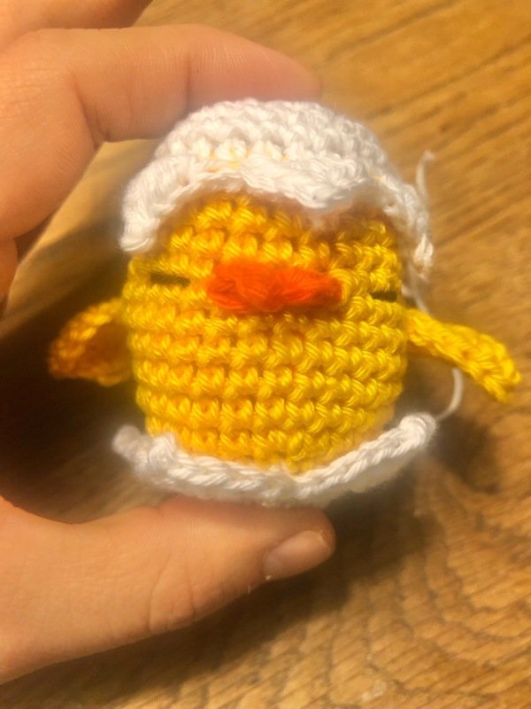 Beim Ei Dottie muss man am Ende nur einen einzigen Faden vernähen und vielleicht wird am Ende ein Vogel bzw. Küken draus.