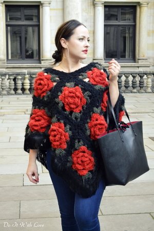 Dieses Rosen Granny Poncho ist handgearbeitet und für den höchsten Komfort sowie viel Wärme designed.